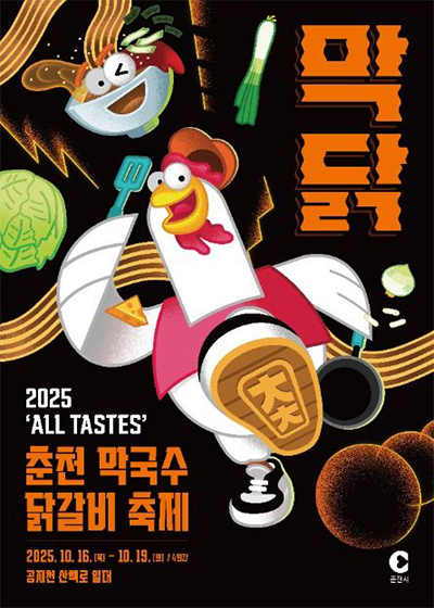 2025 춘천막국수닭갈비축제 페스티벌- 주요행사 : 호수드론 라이트쇼, 나눔이벤트, 매운맛챌린지, 빨리먹기대회, 레시피경연대회, 흑백요리사 셰프, 경품추첨