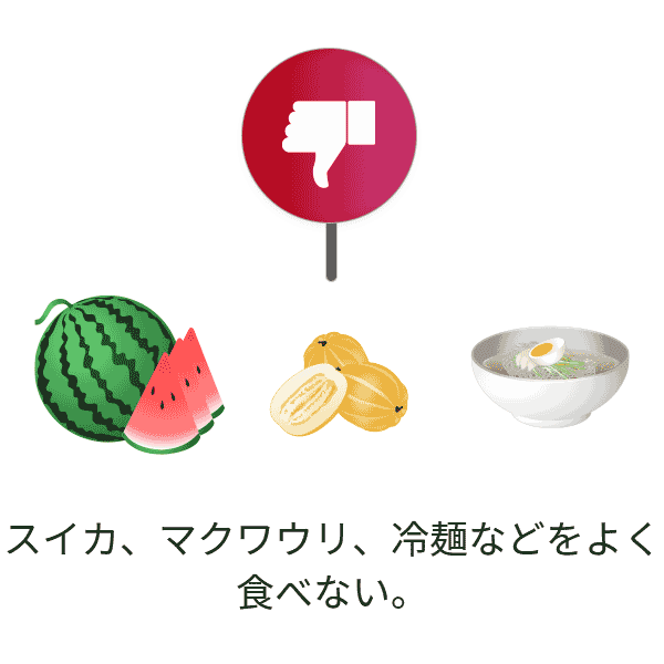 スイカ、マクワウリ、冷麺などをよく食べない。