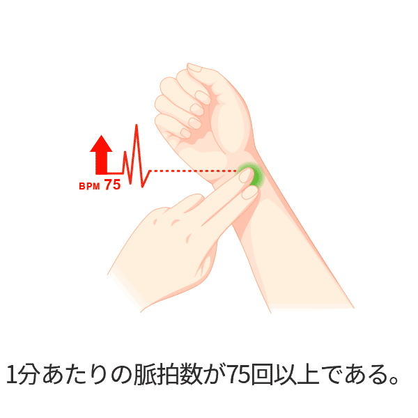 1分あたりの脈拍数が75回以上である。