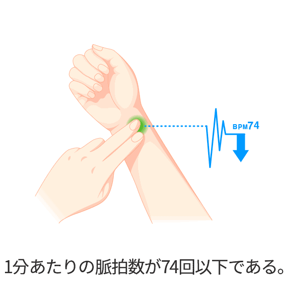 1分あたりの脈拍数が74回以下である。