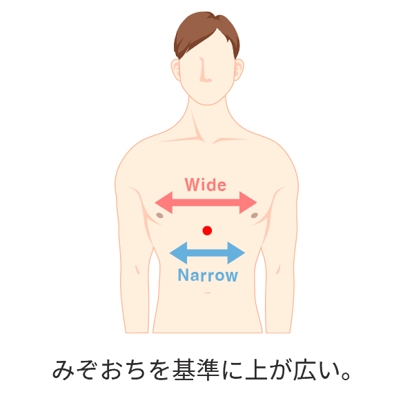 みぞおちを基準に上が広い。