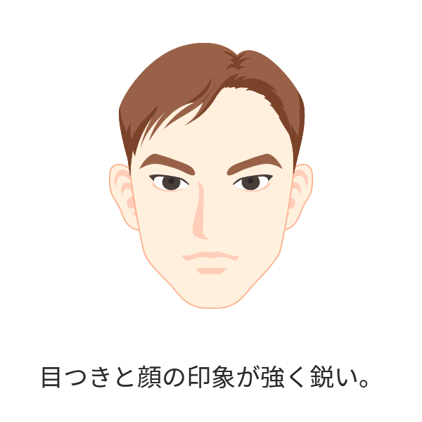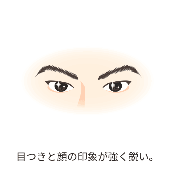 目つきと顔の印象が強く鋭い。