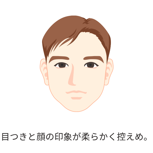目つきと顔の印象が柔らかく控えめ。