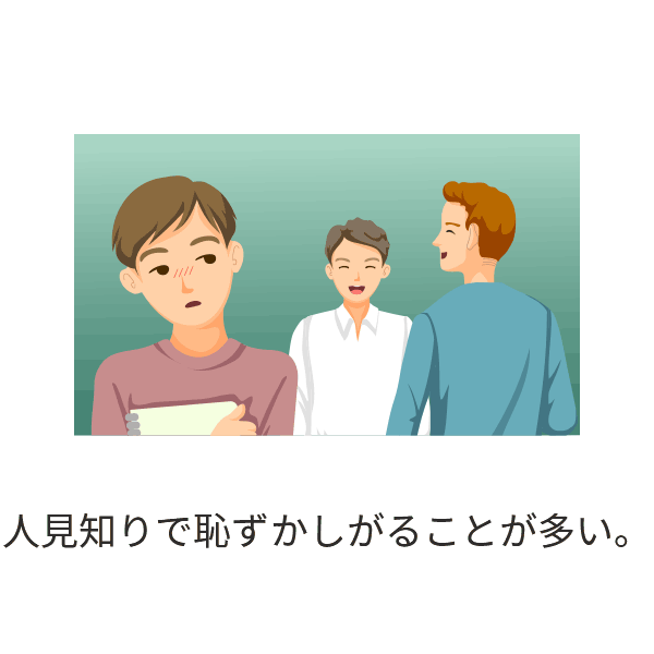 人見知りで恥ずかしがることが多い。